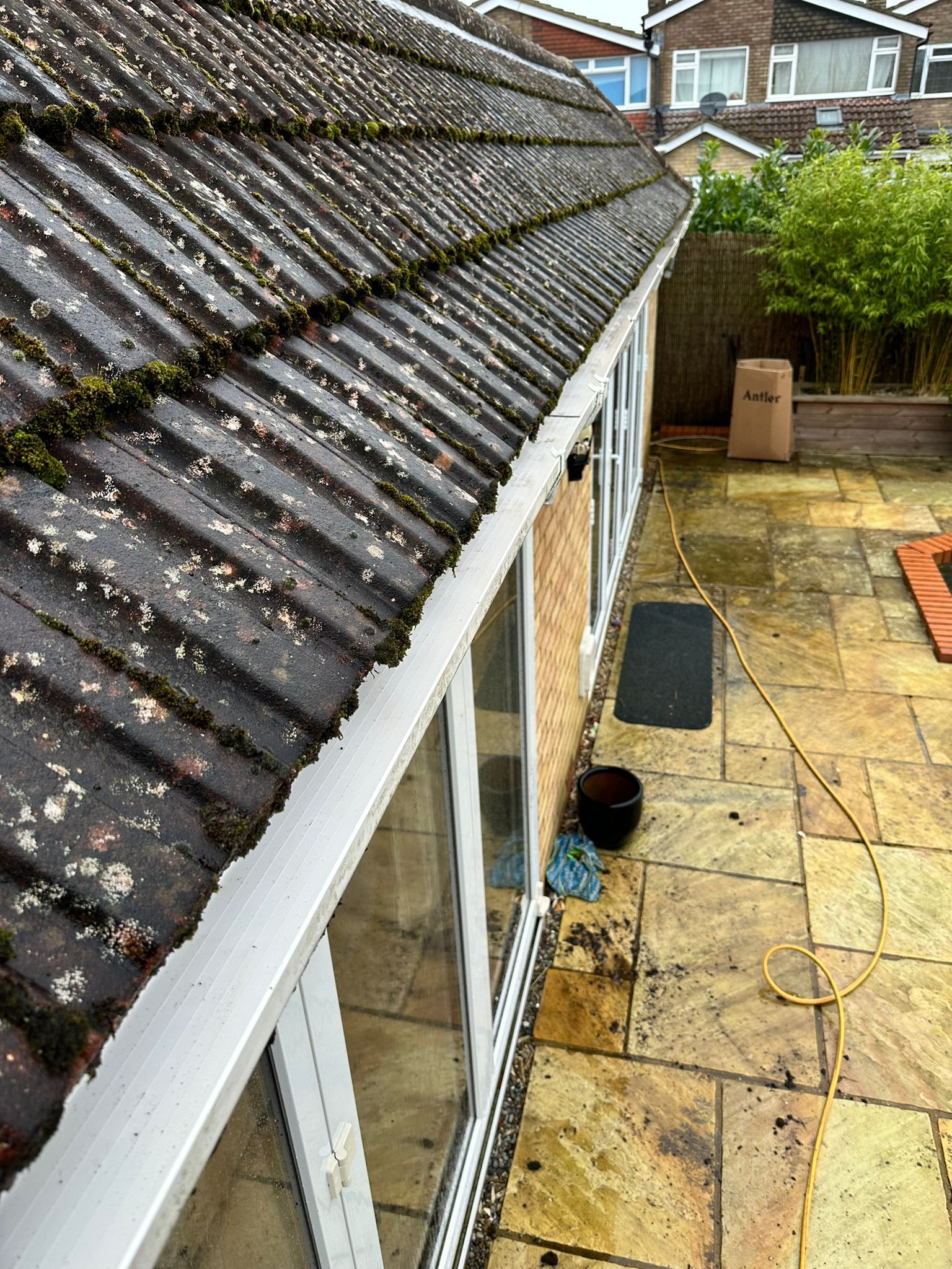 We offer roof moss removal, biocide treatments and steam cleaning as a separate services. If you'd like that quoted too, just ask when you book.